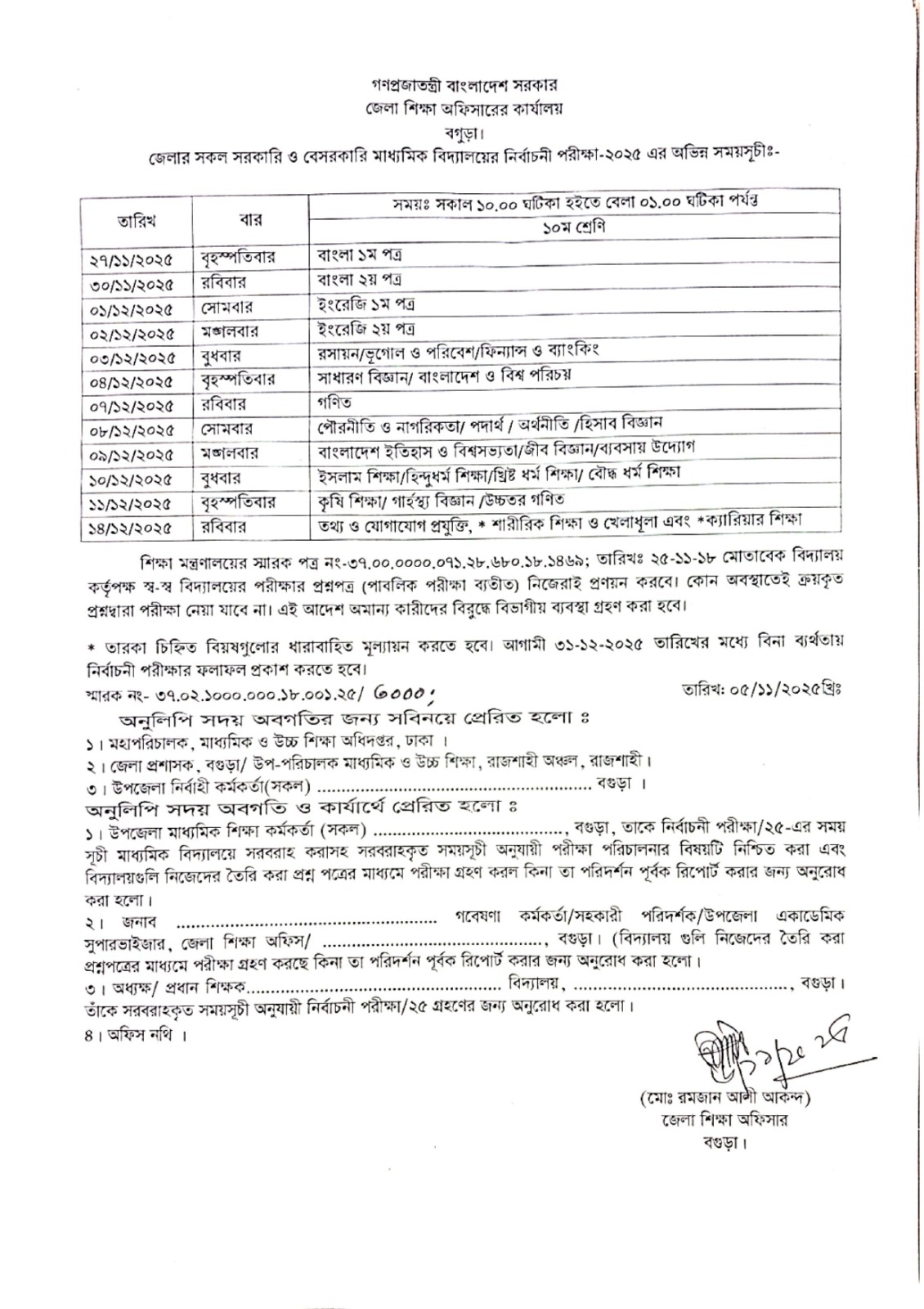 দশম শ্রেণীর নির্বাচনী পরীক্ষা বিজ্ঞপ্তি - ২০২৫Date : 16-Nov-2025